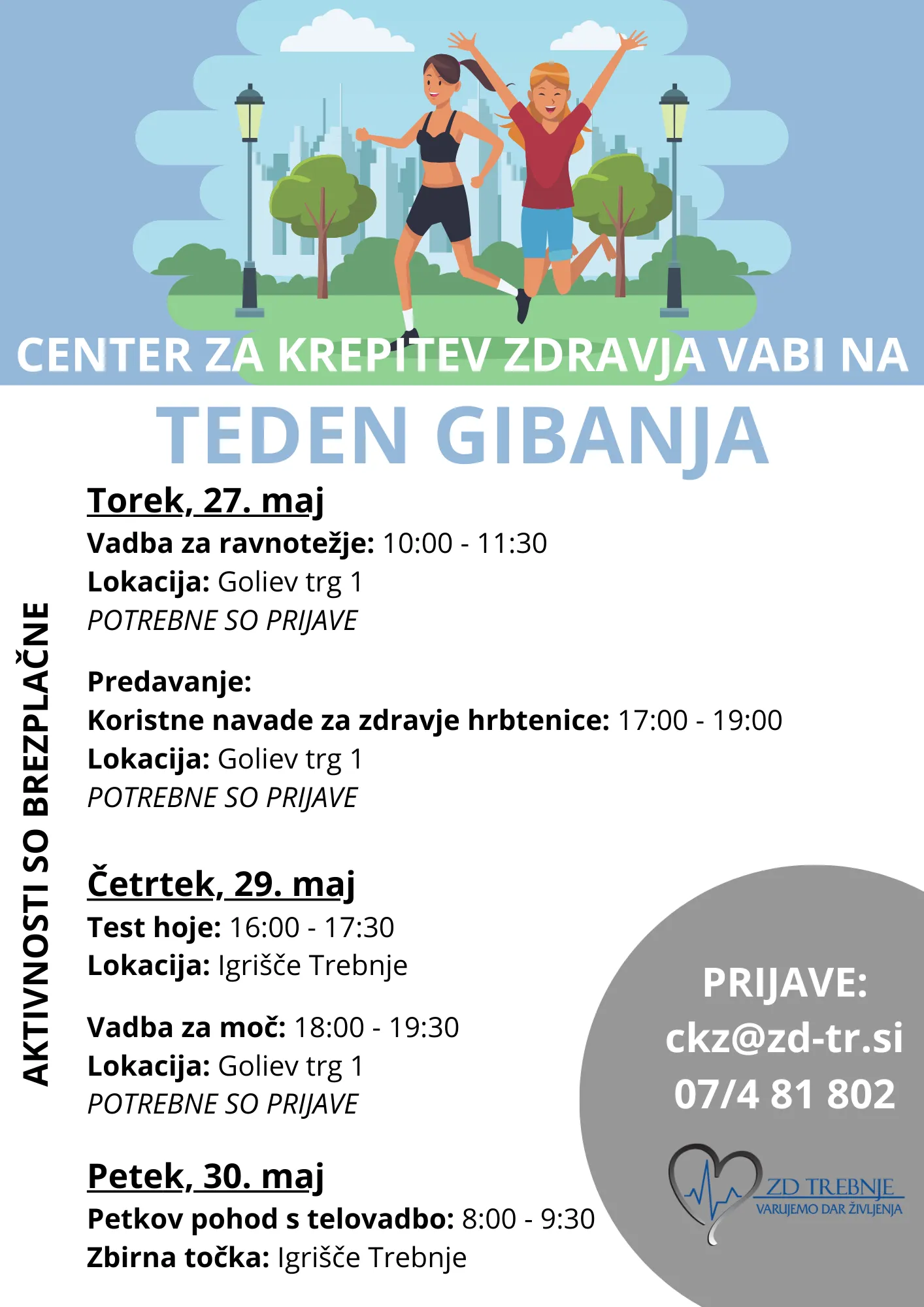 Pridružite se nam na Tednu gibanja, kjer bomo skupaj spodbujali zdrav življenjski slog in uživali v prijetni družbi.